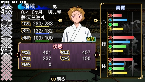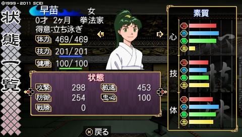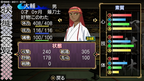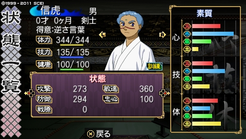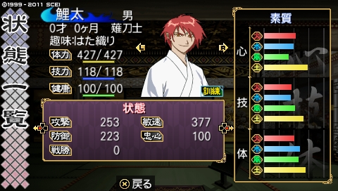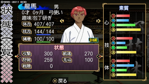 ……前回最後の方に生まれた鯉太(コイタ)と共に、伝説になる男……と同時に、コイツが生まれる少し前、ネットで「刀は誕生と同時に打つと安く買える」という情報を手に入れまして、ようやく剣福さん利用。……実は鬼朱点打倒前に既に剣福さんはできてたんだよ(爆。