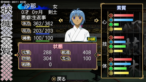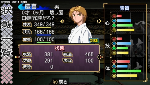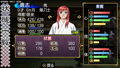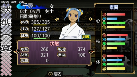 ……前回最後の方に生まれた鯉太(コイタ)と共に、伝説になる男……と同時に、コイツが生まれる少し前、ネットで「刀は誕生と同時に打つと安く買える」という情報を手に入れまして、ようやく剣福さん利用。……実は鬼朱点打倒前に既に剣福さんはできてたんだよ(爆。